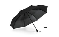 Paraguas Plegable posee correa para colgar, mango de plastico de color. Incluye funda mismo color. De 8 gajos de estructura en 3 partes metálica, botón de bloqueo, apertura manual. Medidas Cerrado Ø4×24 cm Desplegado:Ø 6 55